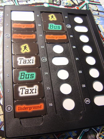 遊戲紙板上有四種移動路線,白線代表計程車、藍線代表公車、紅線代表地鐵、黑線代表渡輪。與現實生活實際情形相同,計程車很多地方可以到,公車站間則較遠,地鐵則是更遠才有一站,但移動速度快。等一下遊戲時,玩家需交出一張交通工具卡,才可以移動對應的路線,而且一次只能移動一站的距離,而且有站才能停(就像地鐵不能停公車站)。